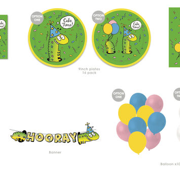 Armed with both brand's guidelines, my team and I got to work developing party tableware and decor essentials for the boxes: from plates, cups, and napkins to balloons, bunting and tablecloths. I developed the packaging execution for the boxes, ensuring that the artwork stayed true to the brands while also eliciting the joy and excitement associated with parties. The results were successful, gaining placement in M&S stores across the UK starting in 2021.