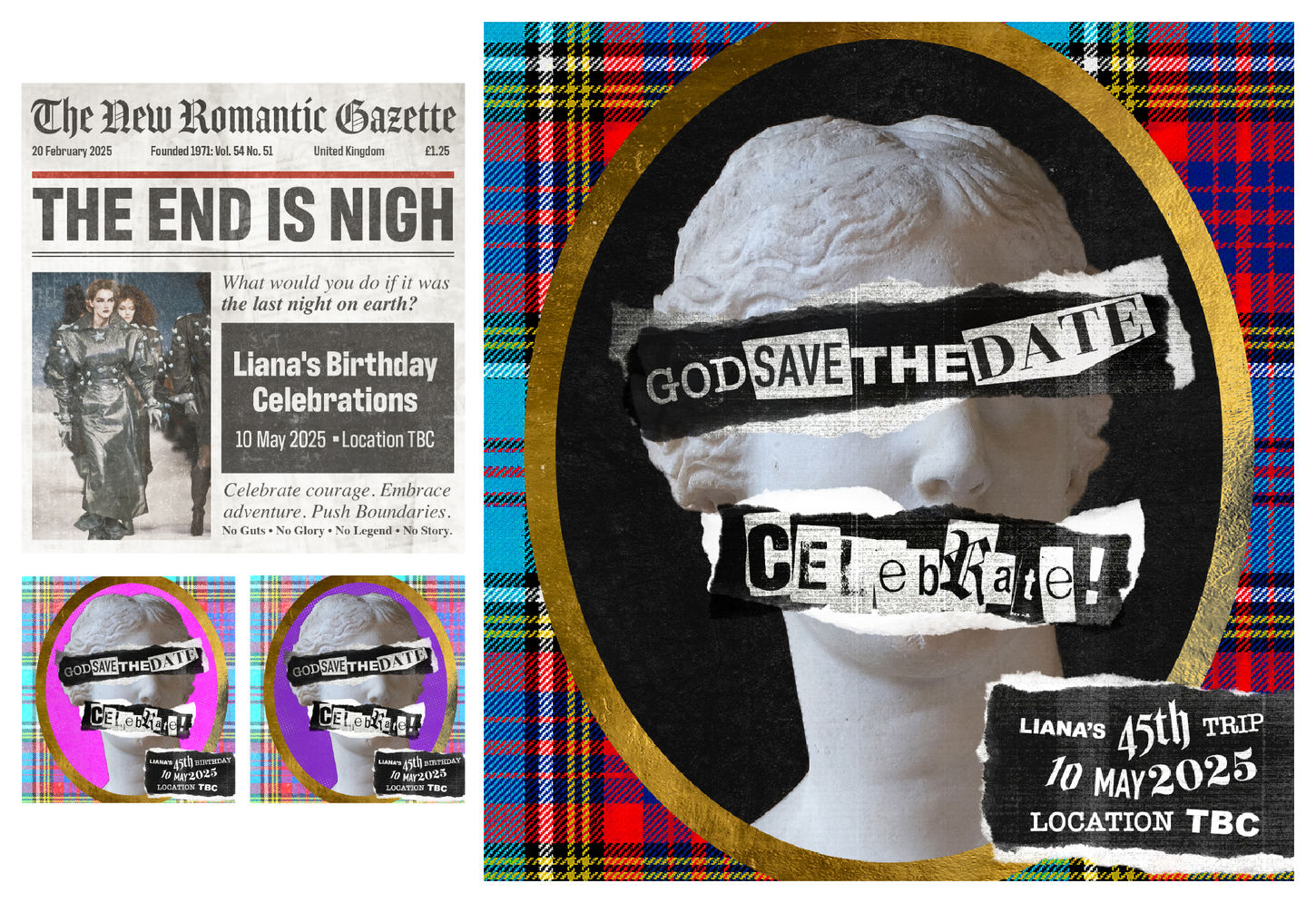 With direction drawing inspiration from Vivienne Westwood’s irreverent prestige and the DIY ethos of 1980s New Romanticism, I infused the visuals with collaged textures and letterpress typography, bridging analogue grit with modern glam. After a stylised photoshoot with the client, I designed two hero billboards using authentic-era clippings and playful Easter eggs referencing punk and fashion culture.